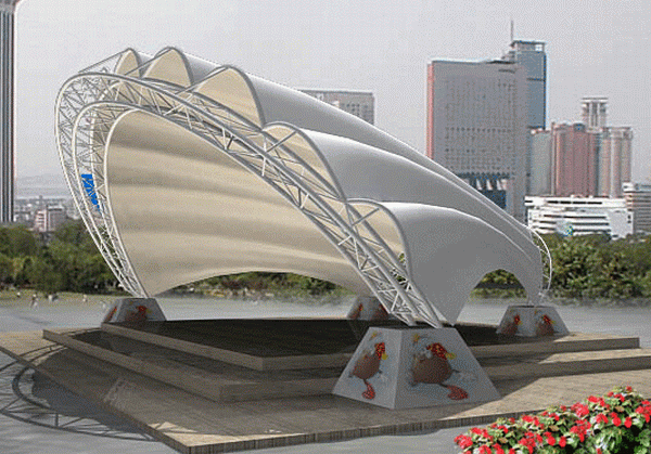 以上四種基本形式僅僅是為了加深理解所作的一種簡(jiǎn)單歸納,實(shí)際膜結(jié)構(gòu)的形狀遠(yuǎn)非如此簡(jiǎn)單,甚至可以說(shuō)是鮮有雷同;即便是這四種基本形式本身也可以有多種多樣的變形。在實(shí)際設(shè)計(jì)時(shí),切不可以拘泥于其中,而應(yīng)把握膜結(jié)構(gòu)自然、流暢的精髓,創(chuàng)造出更多的新穎、別致的膜結(jié)構(gòu)作品。